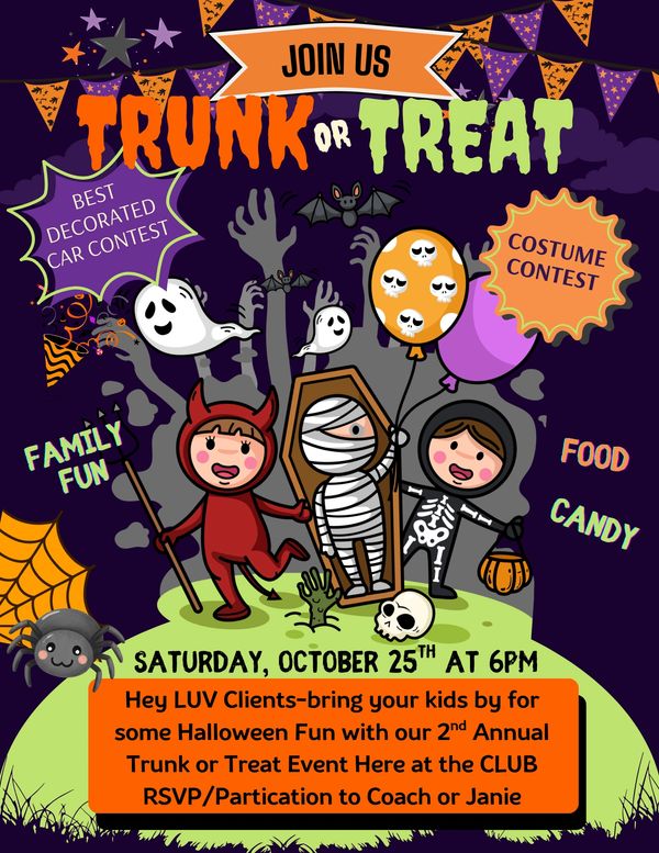 Join us for a fun family night of camaraderie LUV Nutrition Style. Saturday, October 25th at 6pm. Give Janie a call for any questions or concerns 832.423.7030...